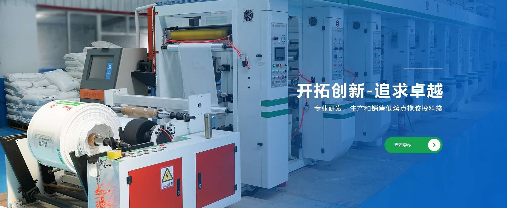 公司創建于1998年,是專業研發(fā)、生產和銷售低熔點橡膠投料袋、EVA閥口袋、LDPE多層閥口袋、EVA/LDPE低熔點膜、橡膠包裝膜、FFS重包裝袋、普通塑料包裝袋、牛皮紙閥口袋等產品的綜合包裝類企業